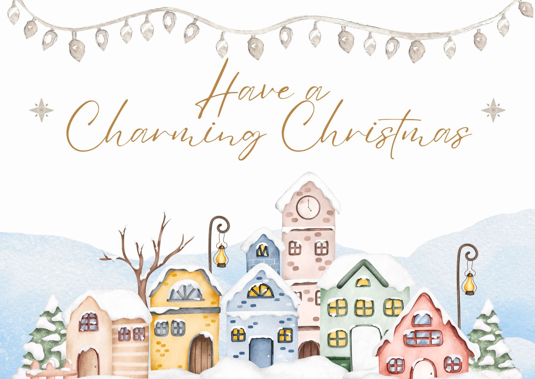 „Have a Charming Christmas” și „The Gift of Charm” — două mesaje care completează cadoul într-un mod elegant și festiv.