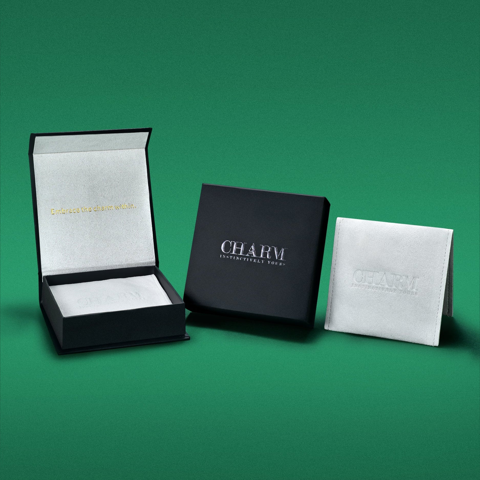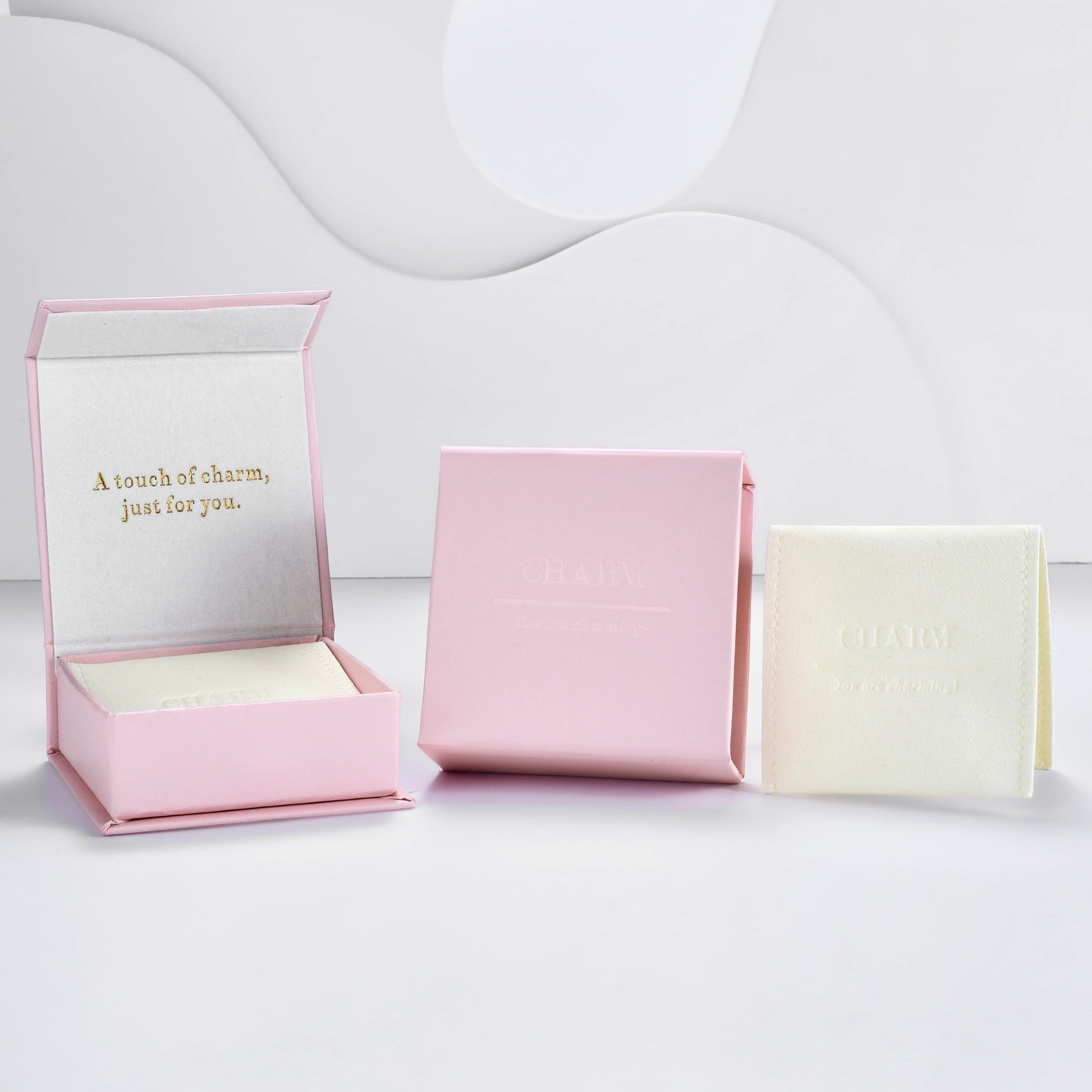 Fiecare bijuterie este oferită într-o cutiuță elegantă CHARM, cu interior textil delicat și un pouch din microfibră — detaliile care transformă un cadou într-o experiență premium.